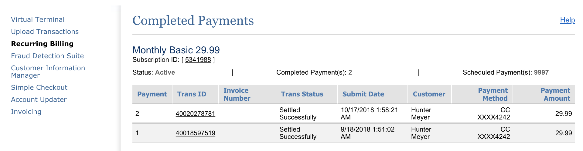 transaction = Transaction.new(api_login_id, transaction_key, gateway: 'sandbox') request = GetTransactionListForCustomerRequest.new request.customerProfileId = '1505270746' response = transaction.get_transaction_list_for_customer(request) response.transactions => nil ### request = ARBGetSubscriptionRequest.new request.subscriptionId = '5341988' response = transaction.arb_get_subscription_request(request) response.subscription.arbTransactions => nil