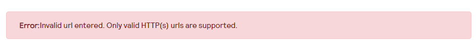 According to the documentation, the URL can only include a limited set of special characters, which seems to be causing the error I'm encountering.