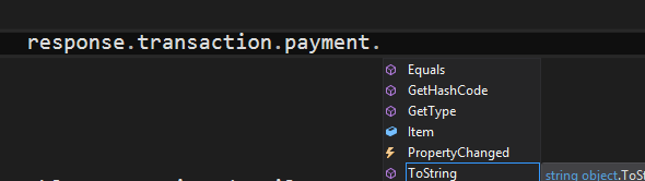 But when i try to get them from Payment Object in my C# code it is not giving me any of above mentioned options. Please show the screenshot below.